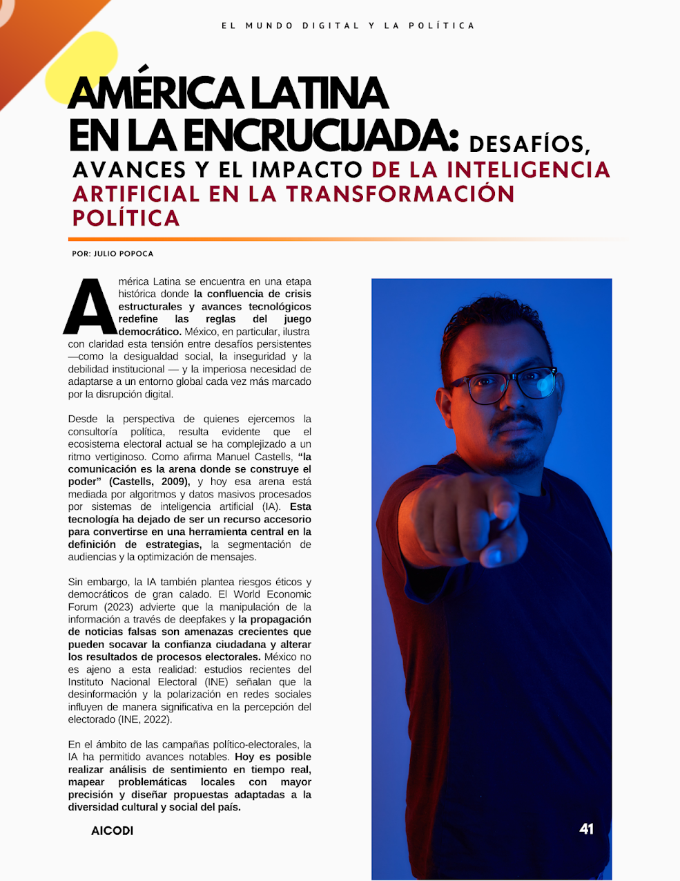 América Latina en la encrucijada: desafíos, avances y el impacto de la inteligencia artificial en la transformación política Por: Julio Popoca América Latina se encuentra en una etapa histórica donde la confluencia de crisis estructurales y avances tecnológicos redefine las reglas del juego democrático. México, en particular, ilustra con claridad esta tensión entre desafíos persistentes —como la desigualdad social, la inseguridad y la debilidad institucional — y la imperiosa necesidad de adaptarse a un entorno global cada vez más marcado por la disrupción digital. Desde la perspectiva de quienes ejercemos…