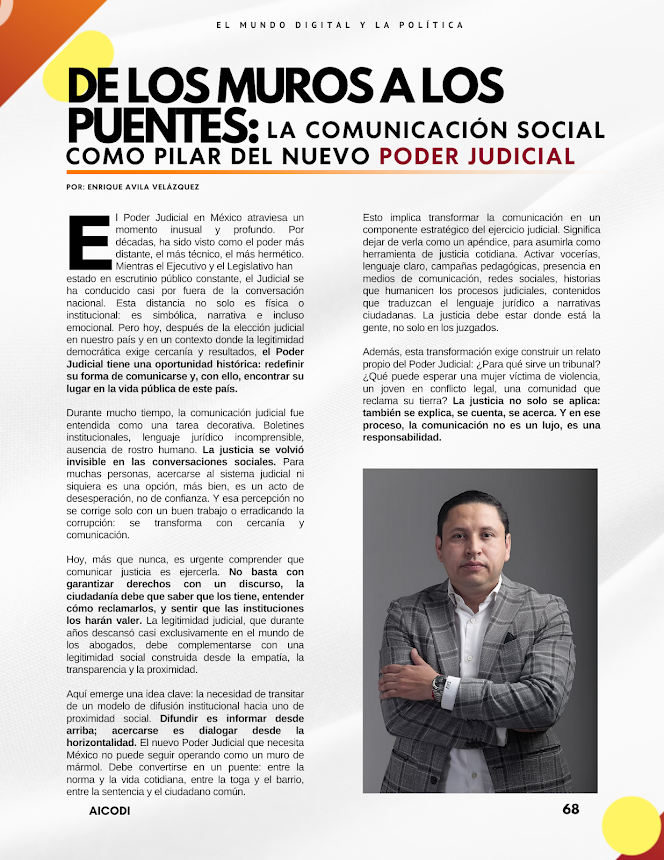 Por: Enrique Ávila Velázquez El Poder Judicial en México atraviesa un momento inusual y profundo. Por décadas, ha sido visto como el poder más distante, el más técnico, el más hermético. Mientras el Ejecutivo y el Legislativo han estado en escrutinio público constante, el Judicial se ha conducido casi por fuera de la conversación nacional. Esta distancia no solo es física o institucional: es simbólica, narrativa e incluso emocional. Pero hoy, después de la elección judicial en nuestro país y en un contexto donde la legitimidad democrática exige cercanía y…