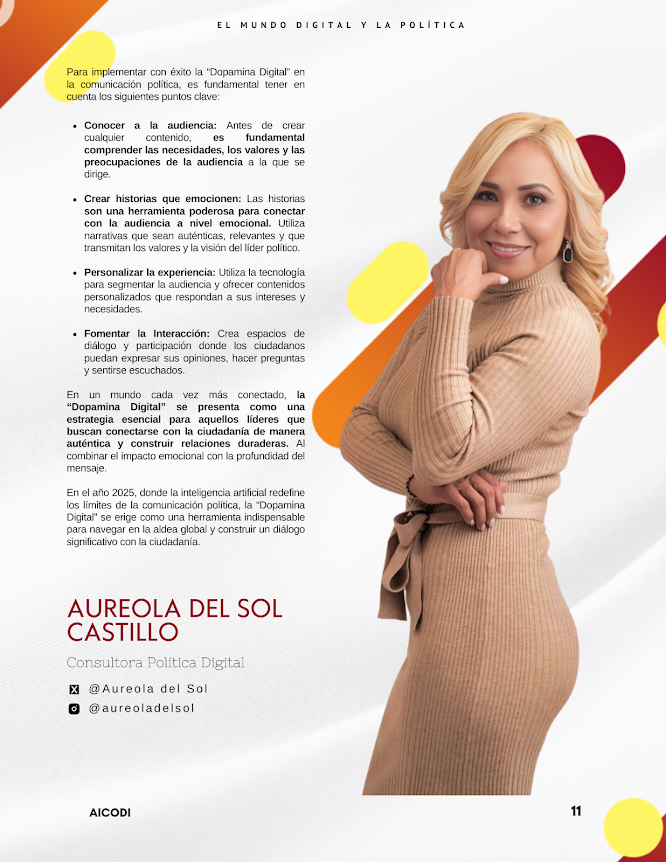 Por. Aureola del Sol Castillo En la frenética era digital que vivimos, donde la información fluye a la velocidad de la luz y conseguir la atención vale oro, la comunicación política enfrenta un desafío sin precedentes. En un mundo inundado de contenidos efímeros y polarizado por la desinformación, ¿cómo pueden los liderazgos políticos conectarse con la ciudadanía de manera auténtica y construir relaciones duraderas? La respuesta reside en aprender a disparar ciertas hormonas en las personas como la dopamina, que para los fines de la compol digital denominamos “Dopamina digital”,…