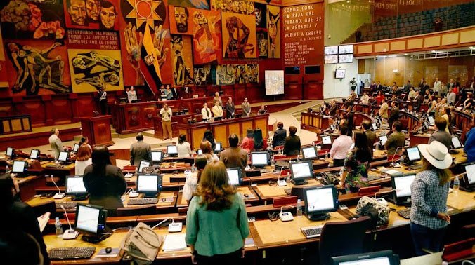 Asamblea en Ecuador con participantes discutiendo temas importantes.