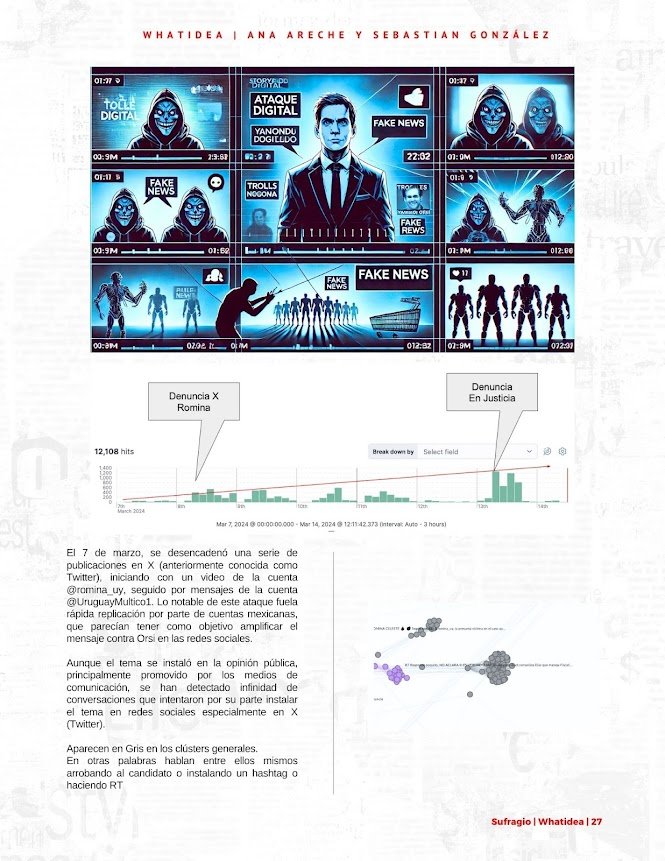 El 7 de marzo, se desencadenó una serie de publicaciones en X (anteriormente conocida como Twitter), iniciando con un video de la cuenta @romina_uy, seguido por mensajes de la cuenta @UruguayMultico1. Lo notable de este ataque fue la rápida replicación por parte de cuentas mexicanas, que parecían tener como objetivo amplificar el mensaje contra Orsi en las redes sociales.