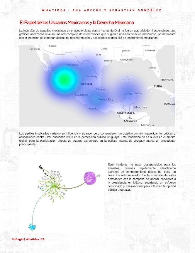 La incursión de usuarios mexicanos en el asedio digital contra Yamandú Orsi no fue un acto aislado ni espontáneo. Los gráficos analizados revelan una red compleja de interacciones que sugieren una coordinación meticulosa, posiblemente con la intención de exportar tácticas de desinformación y acoso político más allá de las fronteras mexicanas.