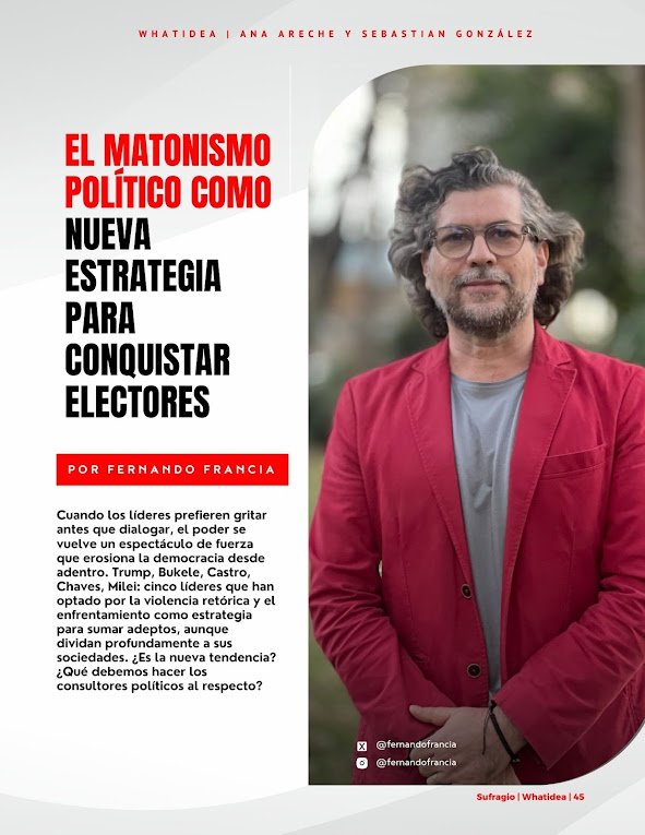Por Fernando Francia Cuando los líderes prefieren gritar antes que dialogar, el poder se vuelve un espectáculo de fuerza que erosiona la democracia desde adentro. Trump, Bukele, Castro, Chaves, Milei: cinco líderes que han optado por la violencia retórica y el enfrentamiento como estrategia para sumar adeptos, aunque dividan profundamente a sus sociedades. ¿Es la nueva tendencia? ¿Qué debemos hacer los consultores políticos al respecto? Una nueva forma de hacer política se impone con fuerza. Ya no se trata solo de propuestas, sino de emociones, identidades y enemigos. Tres elementos…