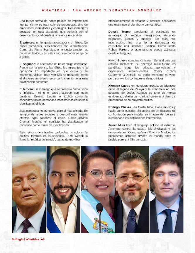 Rodrigo Chaves, en Costa Rica, ataca medios y habla como outsider. Se apoya en un discurso de confrontación para instalar su imagen de fuerza y cuestionar a las instituciones intermedias.