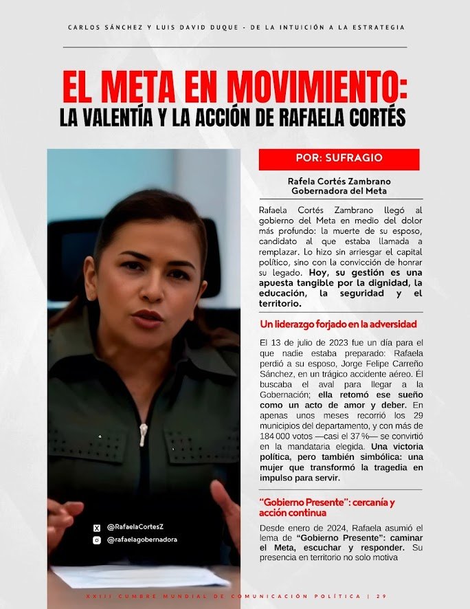 El Meta en movimiento: la valentía y la acción de Rafaela Cortés Rafaela Cortés Zambrano llegó al gobierno del Meta en medio del dolor más profundo: la muerte de su esposo, candidato al que estaba llamada a remplazar. Lo hizo sin arriesgar el capital político, sino con la convicción de honrar su legado. Hoy, su gestión es una apuesta tangible por la dignidad, la educación, la seguridad y el territorio. Un liderazgo forjado en la adversidad El 13 de julio de 2023 fue un día para el que nadie estaba…