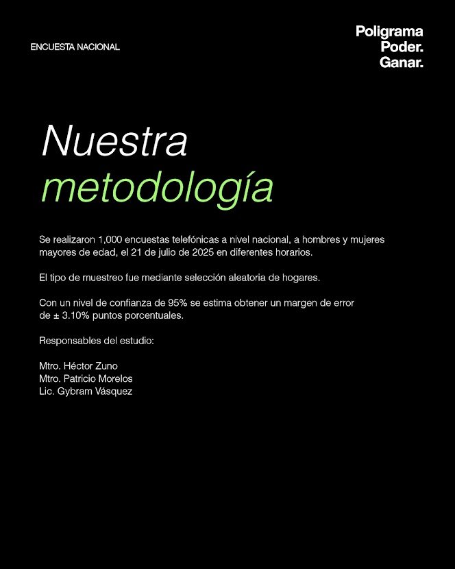Según la encuesta nacional de Poligrama realizada en julio de 2025, Morena se mantiene como el partido con mayor simpatía ciudadana con un 43.5%, seguido por el PAN con 13.2% y Movimiento Ciudadano con 10.5%. El PRI alcanza solo el 9%. Además, el estudio revela que una mayoría de simpatizantes del PAN (63.1%) y del PRI (55%) rechazan la alianza entre ambos partidos. En contraste, más del 55% de quienes apoyan al PAN o a Movimiento Ciudadano están a favor de una posible coalición entre estas dos fuerzas políticas, lo…