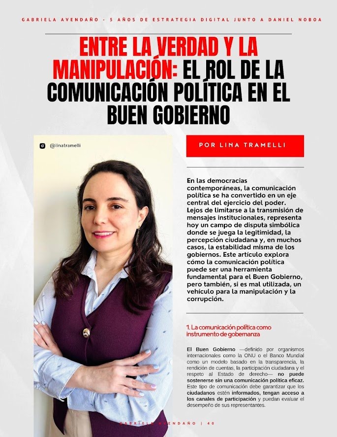 Por: Lina Tramelli En las democracias contemporáneas, la comunicación política se ha convertido en un eje central del ejercicio del poder. Lejos de limitarse a la transmisión de mensajes institucionales, representa hoy un campo de disputa simbólica donde se juega la legitimidad, la percepción ciudadana y, en muchos casos, la estabilidad misma de los gobiernos. Este artículo explora cómo la comunicación política puede ser una herramienta fundamental para el Buen Gobierno, pero también, si es mal utilizada, un vehículo para la manipulación y la corrupción. La comunicación política como instrumento…
