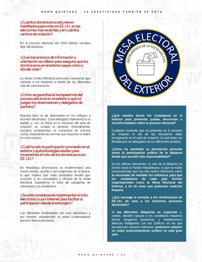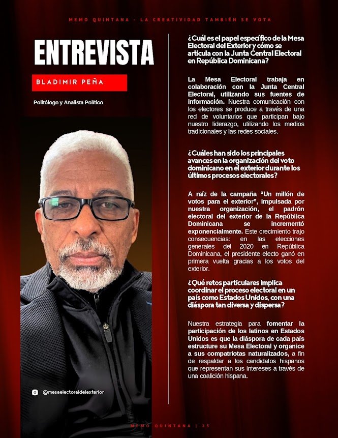 En un contexto donde la participación política de las diásporas adquiere un peso creciente en los procesos democráticos, la labor de quienes articulan el voto en el exterior se vuelve estratégica. Bladimir Peña, coordinador de la Mesa Electoral del Exterior, comparte su visión y experiencia en la organización del sufragio dominicano fuera del país, con especial énfasis en Estados Unidos, donde residen más de 800 mil ciudadanos habilitados para votar. Desde el impulso de campañas como “Un millón de votos para el exterior” hasta los desafíos logísticos y tecnológicos de una diáspora diversa, Peña analiza los avances, retos y perspectivas de una comunidad que, lejos de su tierra natal, mantiene vivo su derecho a incidir en el futuro de la República Dominicana. Esta entrevista aborda además el rol de los observadores, las estrategias de información y el potencial de una coalición hispana organizada como actor político determinante.