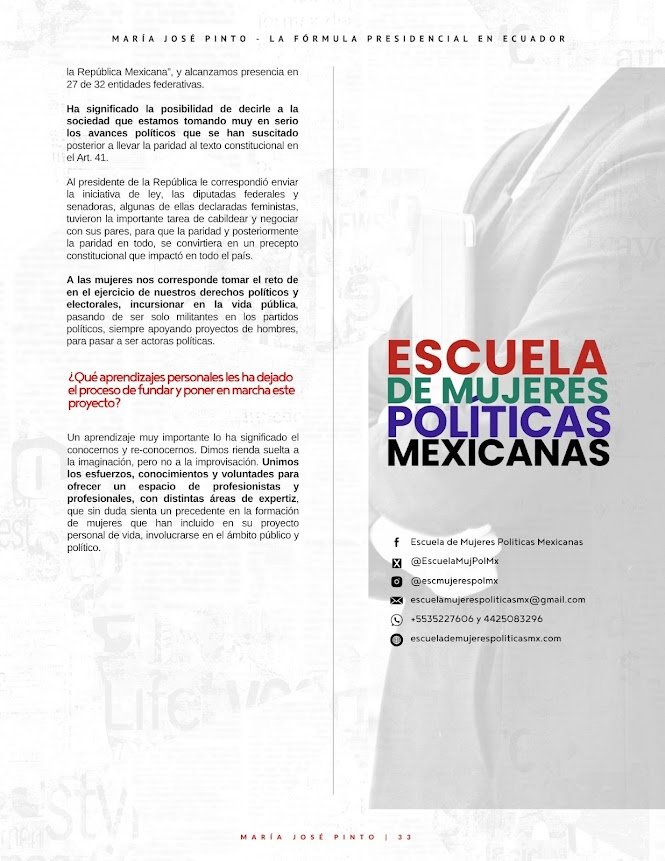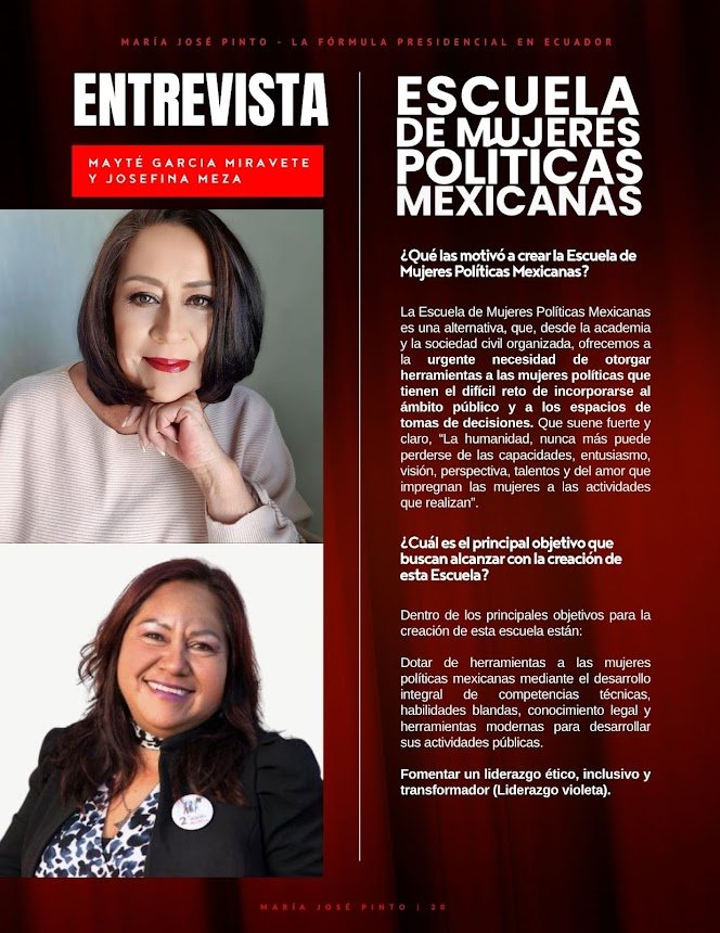 Este cuestionario explora las motivaciones, objetivos y visión que impulsan a las fundadoras de esta innovadora iniciativa, así como los retos y oportunidades que enfrentan las mujeres en la política mexicana. A través de sus respuestas, Josefina y Mayté profundizan en la importancia de una formación especializada y con perspectiva de género, que impulse no solo la paridad numérica, sino también una verdadera paridad sustantiva, capaz de transformar la estructura política tradicional y aportar soluciones integrales a las problemáticas sociales actuales.