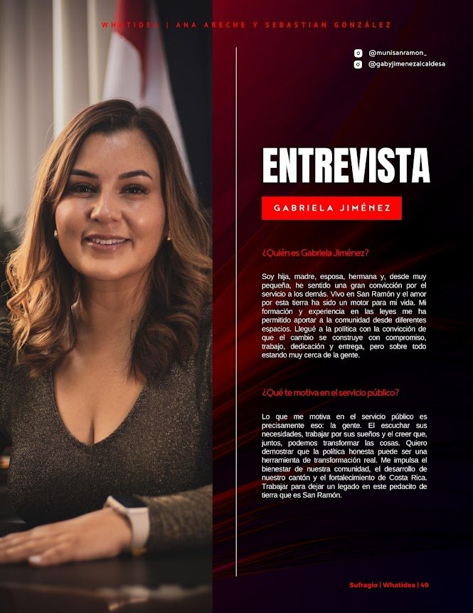 Gabriela Jiménez no solo se define por los cargos que ha ocupado o por los títulos que ha alcanzado, sino por el profundo amor que siente por su tierra y por las personas que la habitan. Hija, madre, esposa y servidora pública, ha hecho de la cercanía con la comunidad su mayor fortaleza. Desde San Ramón, donde vive y ha forjado su compromiso con el servicio público, Gabriela comparte su visión de una política honesta, transparente y centrada en la gente. En esta entrevista para Sufragio, nos habla sobre sus motivaciones, los retos del cantón, las acciones que ha emprendido y la responsabilidad que asume al ser la voz de quienes confían en ella para construir un mejor futuro.