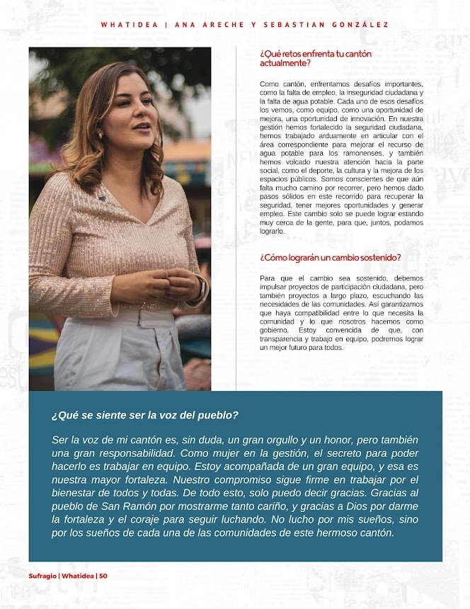 Ser la voz de mi cantón es, sin duda, un gran orgullo y un honor, pero también una gran responsabilidad. Como mujer en la gestión, el secreto para poder hacerlo es trabajar en equipo. Estoy acompañada de un gran equipo, y esa es nuestra mayor fortaleza. Nuestro compromiso sigue firme en trabajar por el bienestar de todos y todas. De todo esto, solo puedo decir gracias. Gracias al pueblo de San Ramón por mostrarme tanto cariño, y gracias a Dios por darme la fortaleza y el coraje para seguir luchando. No lucho por mis sueños, sino por los sueños de cada una de las comunidades de este hermoso cantón.