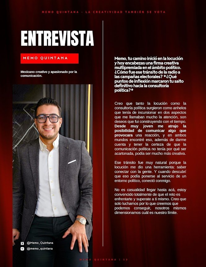 - 1. Memo, tu camino inició en la locución y hoy encabezas una firma creativa multipremiada en el ámbito político. ¿Cómo fue ese tránsito de la radio a las campañas electorales? *¿Qué puntos de inflexión marcaron tu salto definitivo hacia la consultoría política?*