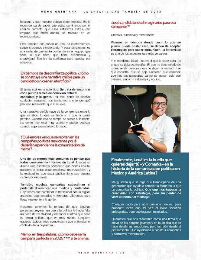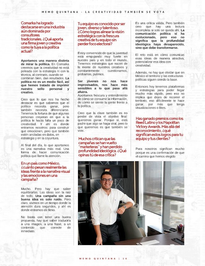 - 10. Finalmente, ¿Cuál es la huella que quieres dejar tú –y Comarka– en la historia de la comunicación política en México y América Latina?