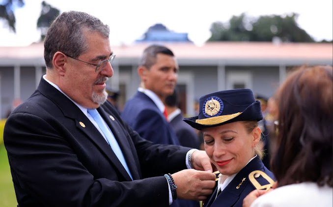 Tras participar en el desfile militar conmemorativo del 153 aniversario del Ejército de Guatemala, el Presidente, junto a la vicepresidenta Karin Herrera y otras altas autoridades, presidió la ceremonia oficial de ascensos. En total, se otorgaron cuatro ascensos a general de brigada y 19 a coronel, incluyendo a las siguientes siete mujeres:
