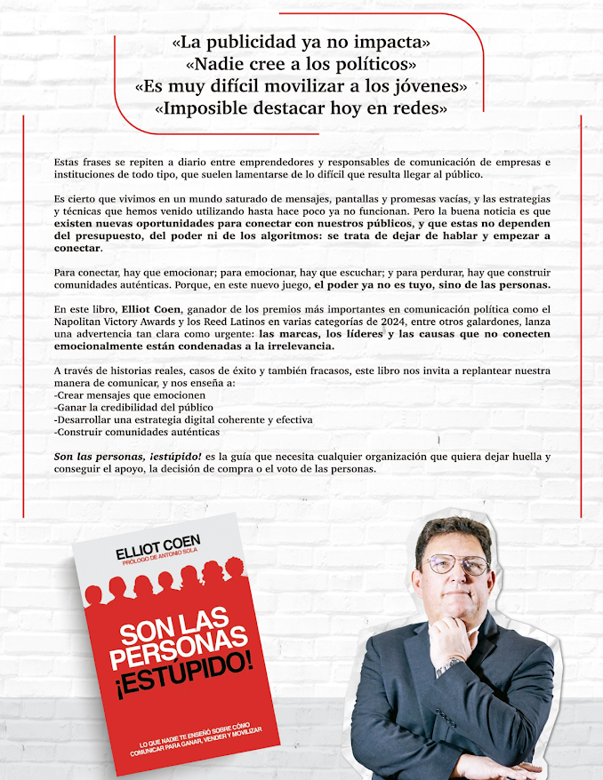 Por: Elliot Coen En Son las personas ¡estúpido! defiendo una idea simple pero poderosa: toda estrategia de comunicación política que ignore las emociones está condenada al fracaso. No importa cuántos millones se inviertan en campañas, cuán creativos sean los slogans o cuán sofisticadas sean las herramientas digitales. Si no hay conexión emocional real con la ciudadanía, no hay proyecto político que se sostenga. A lo largo del libro, exploro cómo las personas ya no deciden a partir de argumentos fríos o estadísticas brillantes. Hoy deciden a partir de lo que…