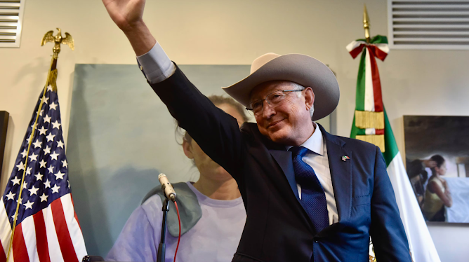 Ken Salazar dejará oficialmente su cargo el próximo martes 7 de enero. Tras su salida, Mark Johnson, jefe de la Misión Adjunto, asumirá el liderazgo interino hasta que el Senado estadounidense ratifique el nombramiento de Ron Johnson, elegido por el presidente electo Donald Trump como el próximo representante de Estados Unidos en México.