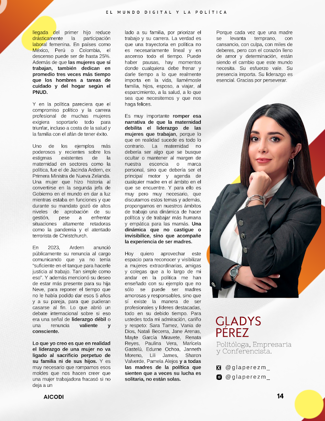 Por: Gladys Pérez Ya sea desde la función pública, la sociedad civil organizada, la academia, la consultoría o desde el primer plano de la política como una candidatura o desde el ejercicio del poder, hay una situación muy clara para las mujeres que se dedican a la política y son mamás: parece que transitan un camino exhaustivo y solitario.  Y no es que otras profesiones no sean altamente demandantes para las mujeres con hijos, sino que quienes trabajamos en política, sabemos que, en determinados momentos como una campaña electoral, la…