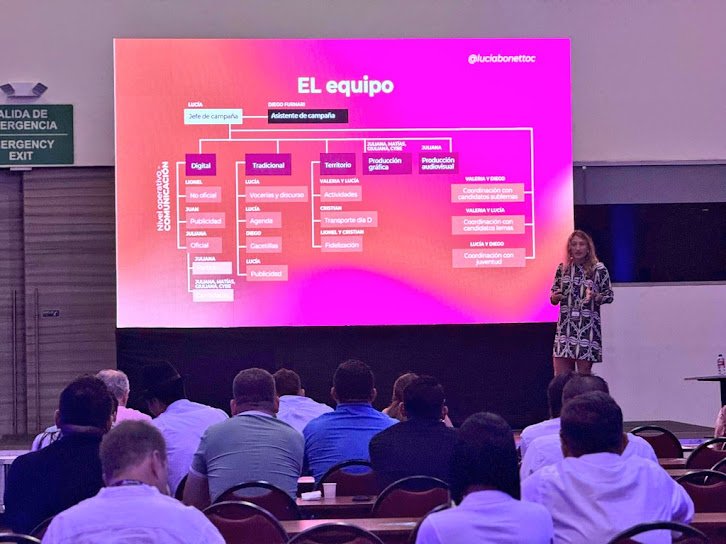 La conferencia ofreció una mirada detallada sobre cómo combinar planificación, coordinación y estrategia digital en contextos de alta complejidad electoral, brindando herramientas prácticas para consultores y equipos de campaña.