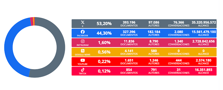 739 mil documentos analizados, con un alcance potencial de 53 mil millones de impresiones.