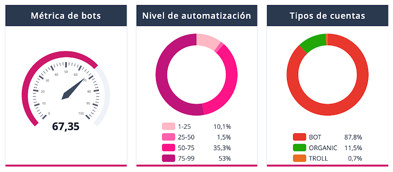 El informe detectó un 67% de automatización, con 87,8% de las cuentas clasificadas como bots.