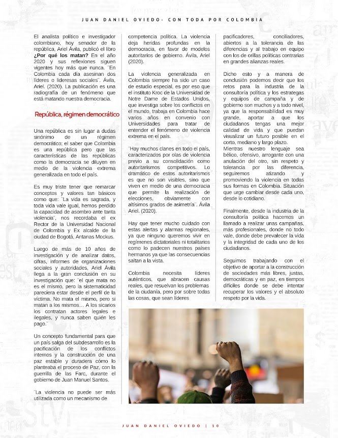 Finalmente, desde la industria de la consultoría política hacemos un llamado a realizar unas campañas, más profesionales, donde no todo vale, donde sede prevalecer la vida y la integridad de cada uno de los ciudadanos.
