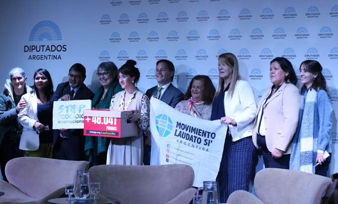 El acto de presentación se realizó en el Salón Auditorio de la Cámara de Diputados, donde se subrayó la urgencia de establecer sanciones concretas contra la destrucción masiva de ecosistemas. La diputada nacional Margarita Stolbizer recibió formalmente la petición, surgida de la campaña de Change.org “Argentina necesita una Ley de Ecocidio”.