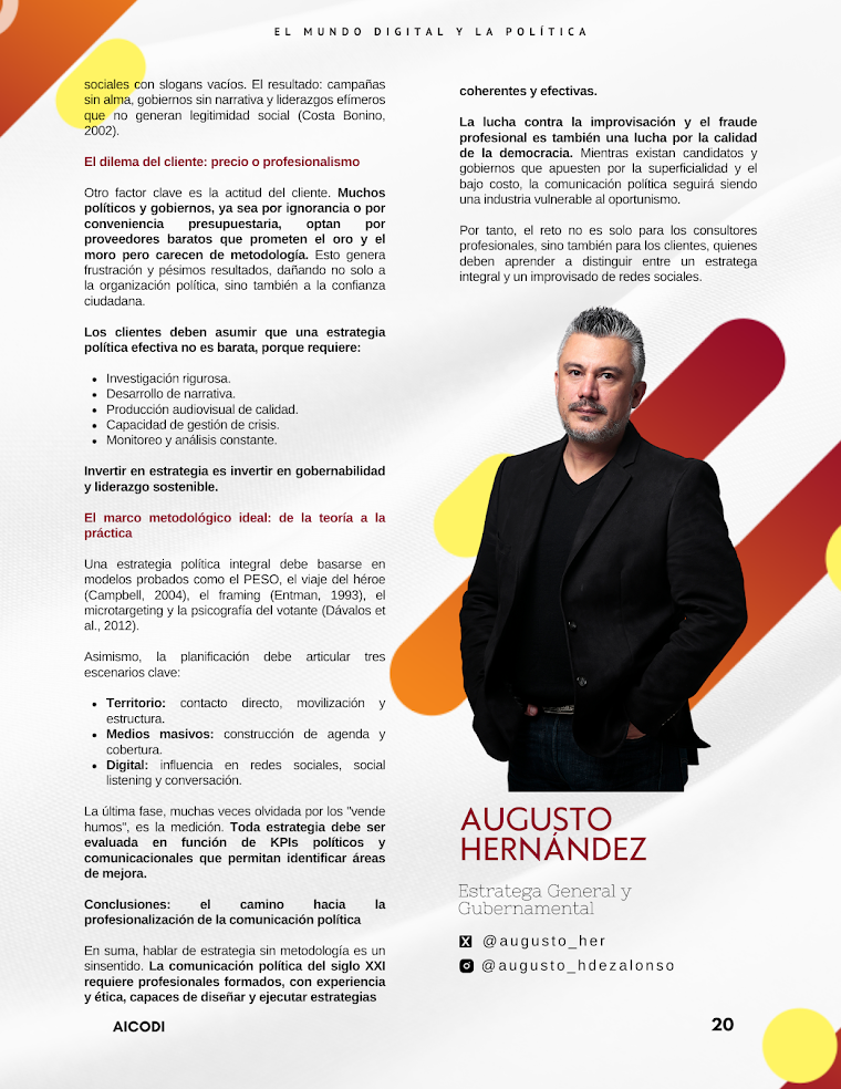 En suma, hablar de estrategia sin metodología es un sinsentido. La comunicación política del siglo XXI requiere profesionales formados, con experiencia y ética, capaces de diseñar y ejecutar estrategias coherentes y efectivas