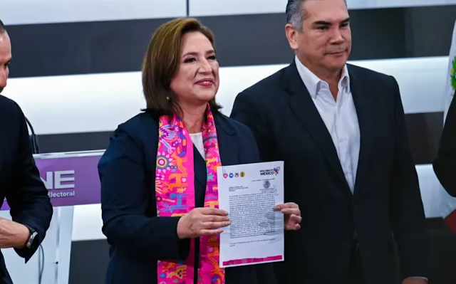 Xóchitl Gálvez oficializó ante el Instituto Nacional Electoral (INE) su postulación como candidata a la Presidencia para las elecciones de 2024, arropada por los partidos Acción Nacional (PAN), Revolucionario Institucional (PRI) y de la Revolución Democrática (PRD).